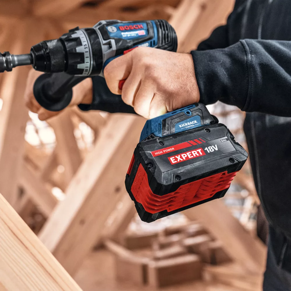 Az EXBA18V-80 nagy teljesítményű Expert akkumulátor akár 120%-kal több üzemidőt biztosít megszakítás nélkül, még nagy igénybevételt jelentő alkalmazások esetén is (a Professional GBA 18V 4.0Ah-val összehasonlítva; belső laboratóriumi tesztek; lágyacél csiszolása Professional GWS 18V-15 S + legyezőtárcsával, 30 s-os intervallumok 5 s-os szünetekkel). Az akkumulátor fejlett tabless cellatechnológiát használ, ami akár 2400 W maximális teljesítményt biztosít (belső laboratóriumi tesztadatok; pillanatnyi maximális teljesítmény, teljesen feltöltött, új akkumulátor). A megerősített, robusztus háznak és a COOLPACK 2.0 technológia kiváló hőkezelésének, valamint a tabless cellatechnológiának köszönhetően az EXBA18V-80 hosszú élettartamú, ezért ideális a robusztusságra és teljesítményre építő szakemberek számára.