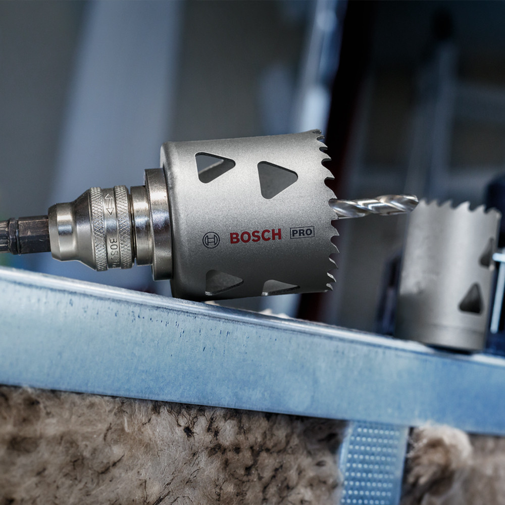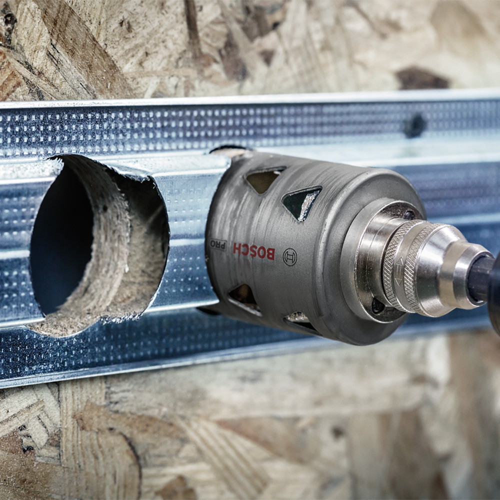 A PRO Multi Material továbbfejlesztett fogkialakítással rendelkezik a gyors és sima vágásokhoz, a hosszú élettartam érdekében magas kobalttartalmú HSS ötvözetből készült fogakkal. Hatékony körkivágást tesz lehetővé acélburkolatban és gipszkartonban. A Power Change Plus gyorsabbá teszi a körkivágók és a központosító fúrószárak cseréjét, és megkönnyíti a furatmag eltávolítását.