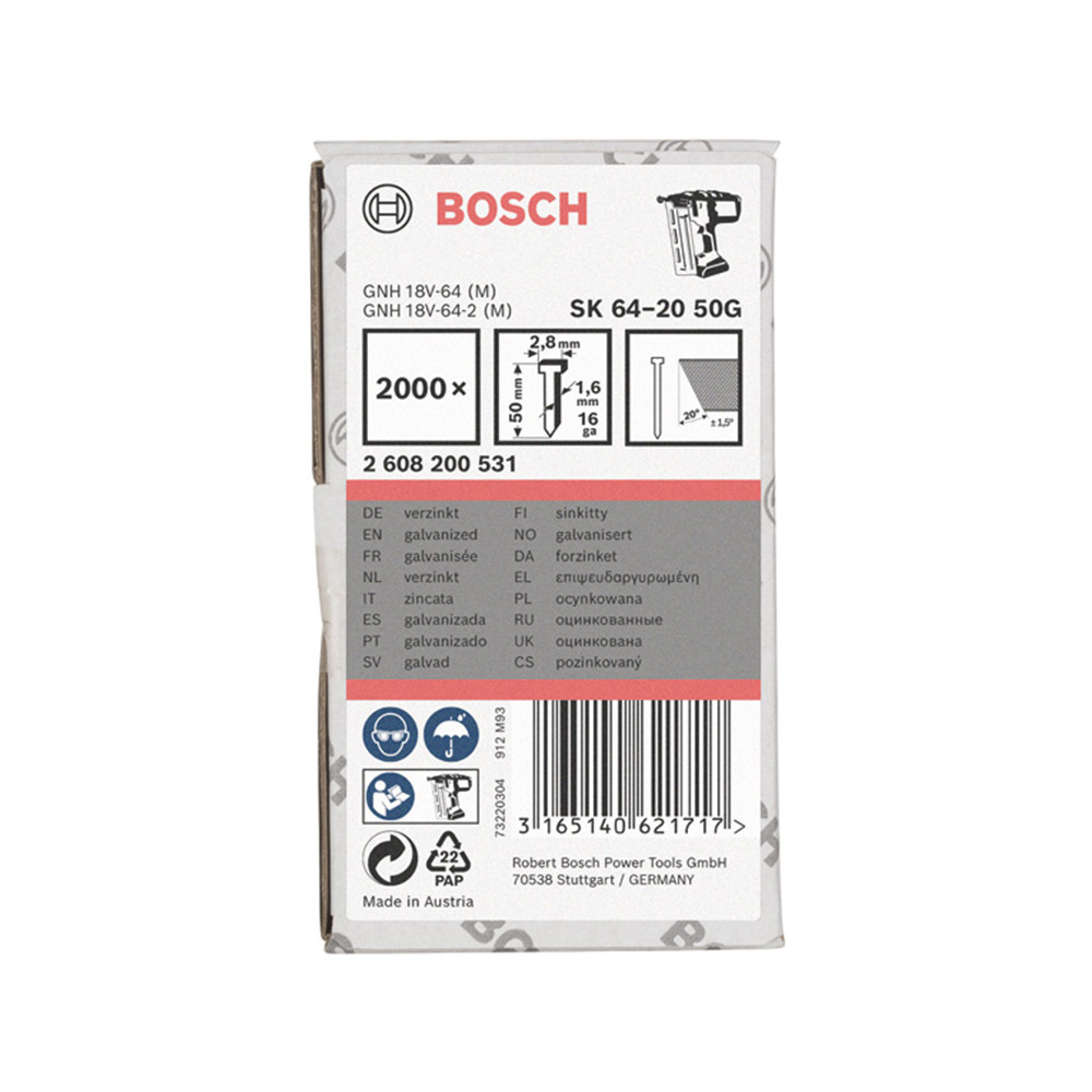 Bosch Süllyesztettfejű szeg SK64-20 50G, 2000 db