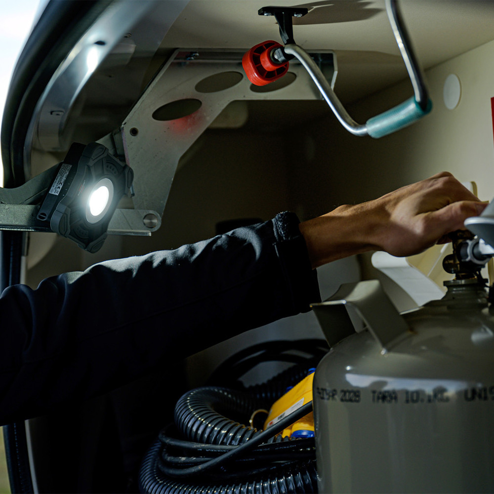 Be-/kikapcsolóval és 3 különböző fényerősséggel (25%/50%/100%), valamint villanófény funkcióval
