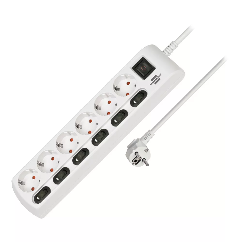 Brennenstuhl egyenként kapcsolható hálózati elosztó 6 dugalj, fehér, 2m