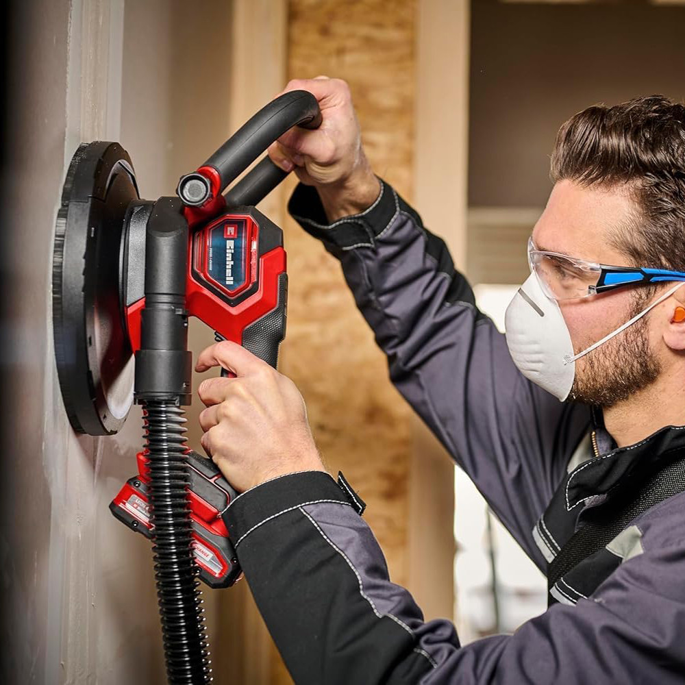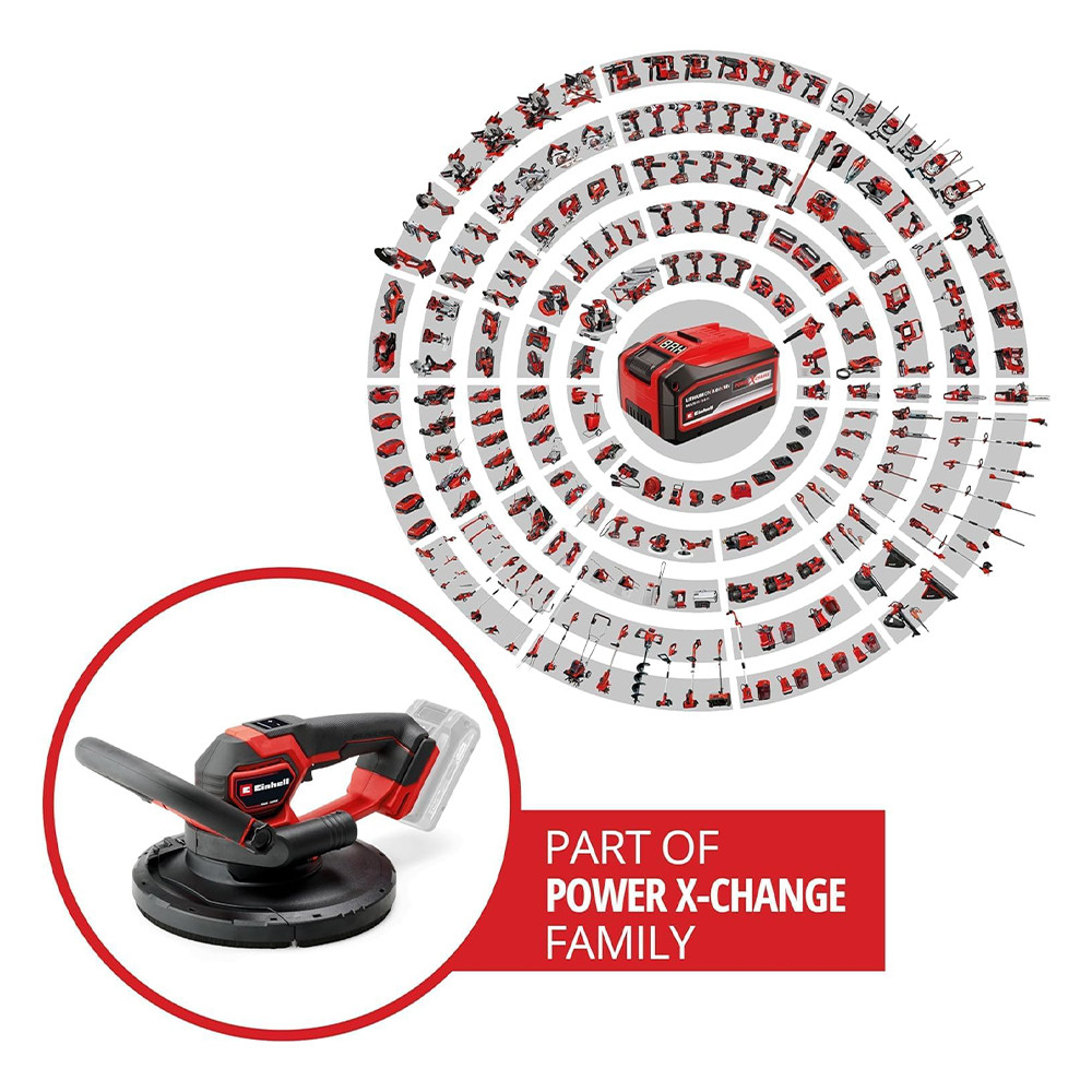 • Az Einhell Professional TP-DWS 18/225 Li BL Solo akkus gipszkartoncsiszoló a Power X-Change termékcsalád erőteljes és sokoldalú tagja, amelyet egy 18 V-os Einhell PurePOWER szénkefe nélküli motor hajt