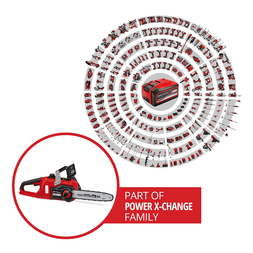 A FORTEXXA tökéletes segítő a vastag ágú gyümölcsfák, a sűrű lombozat és a tűlevelűek famegmunkálásához, mivel az Einhell szénkefe nélküli motorja hajtja