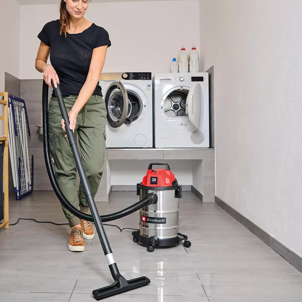 Az Einhell TC-VC 2045 S nedves/száraz porszívó tökéletesen alkalmas a ház, a műhely és a garázs körüli alapos takarításra.