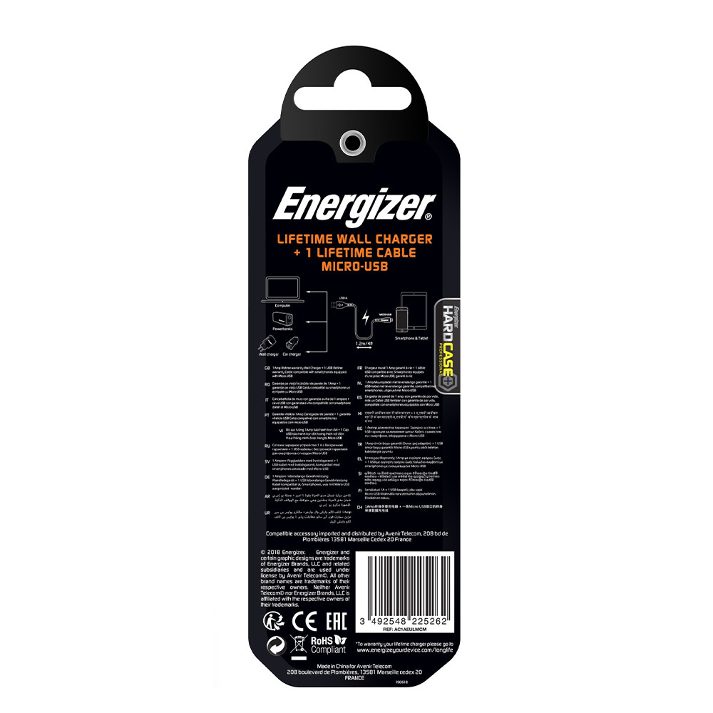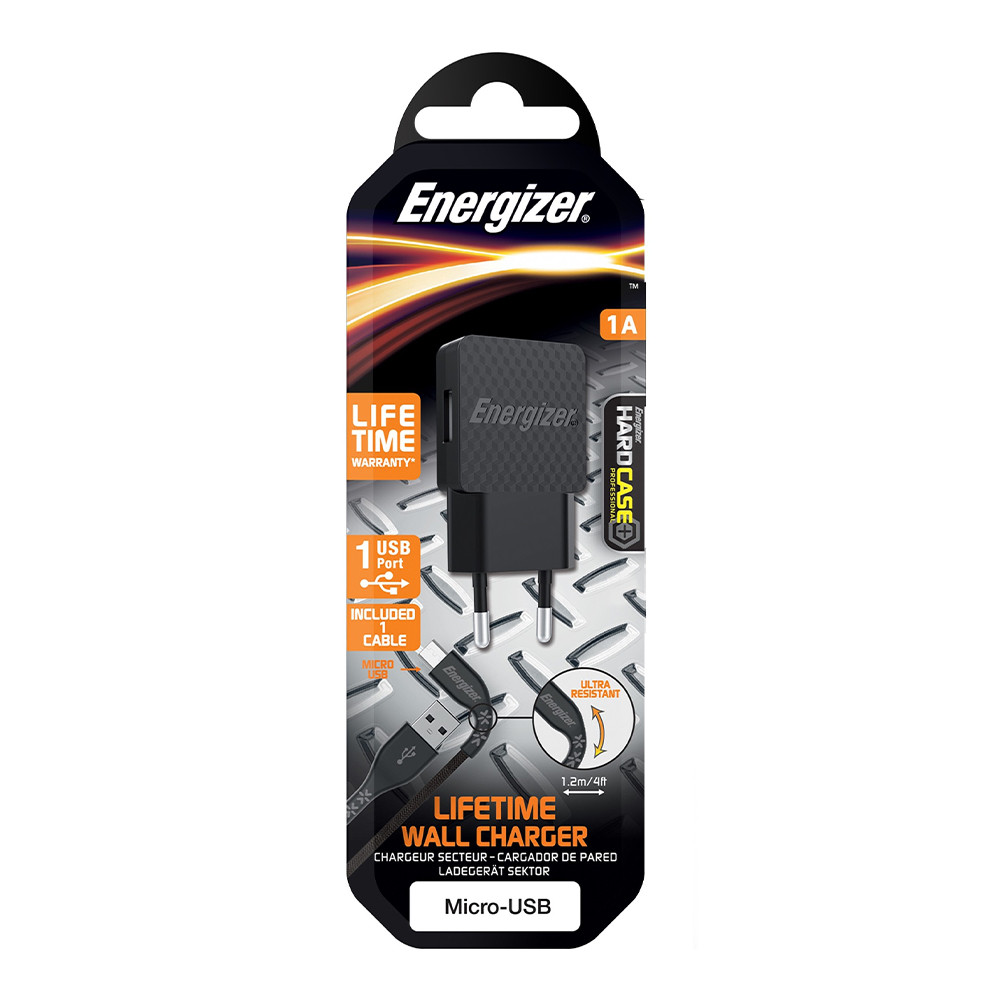 1 db Energizer fali töltő 1A EU + MicroUSB kábel fekete