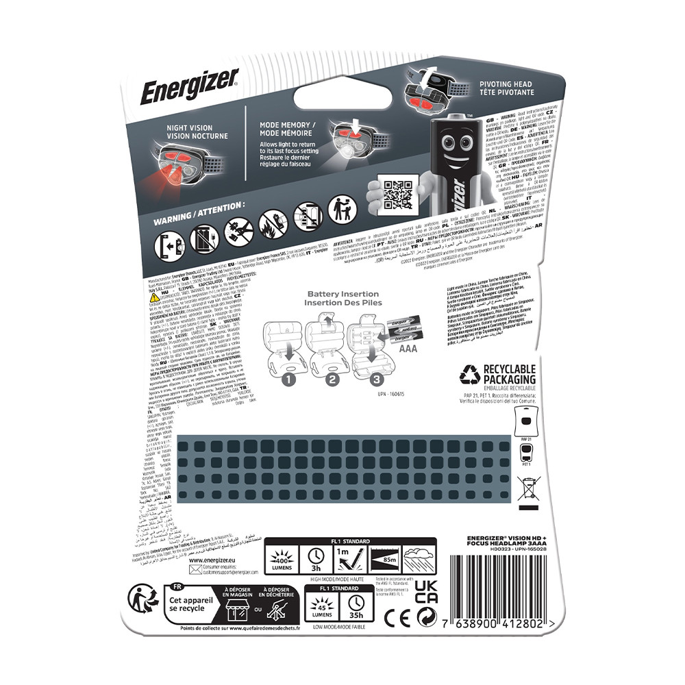 1 db Energizer fejlámpa Vision HD+ Focus + 3xAAA