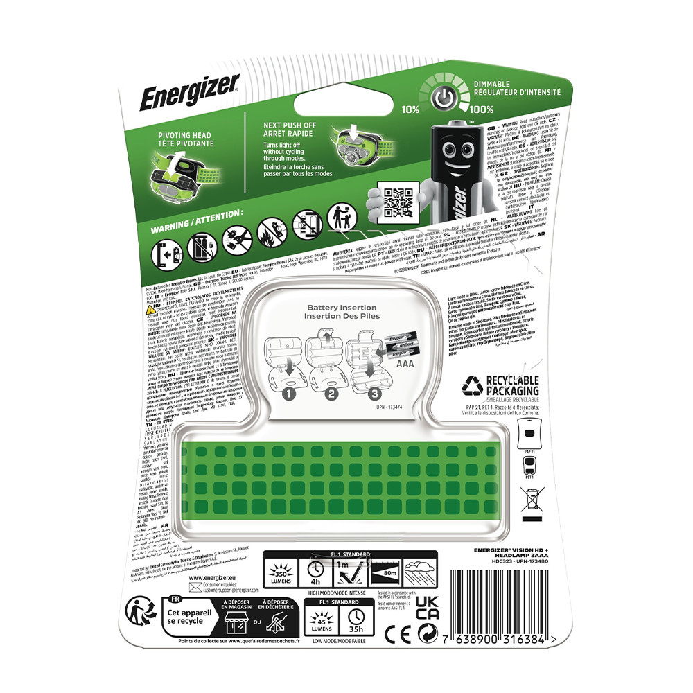 1 db Energizer fejlámpa Vision HD Plus + 3xAAA