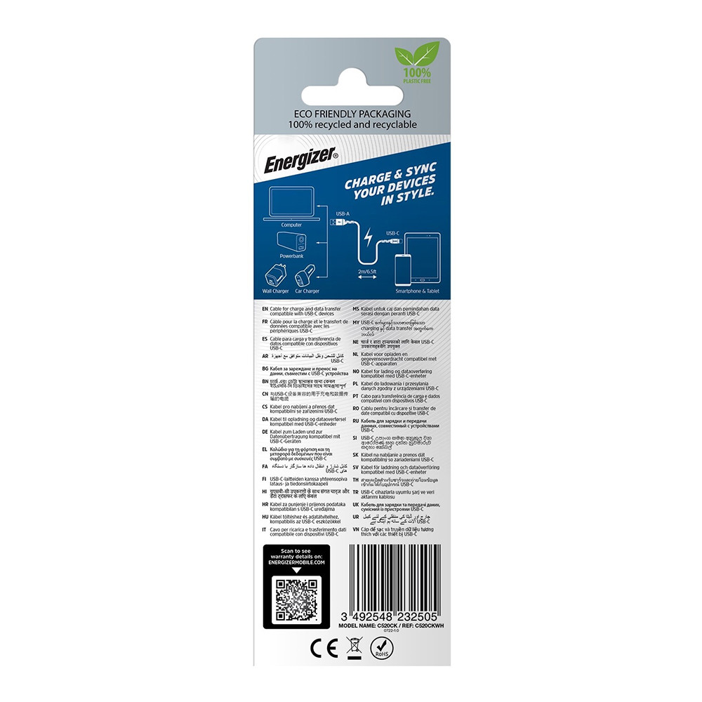 1 db Energizer töltőkábel USB-C 2M fehér textil borítás