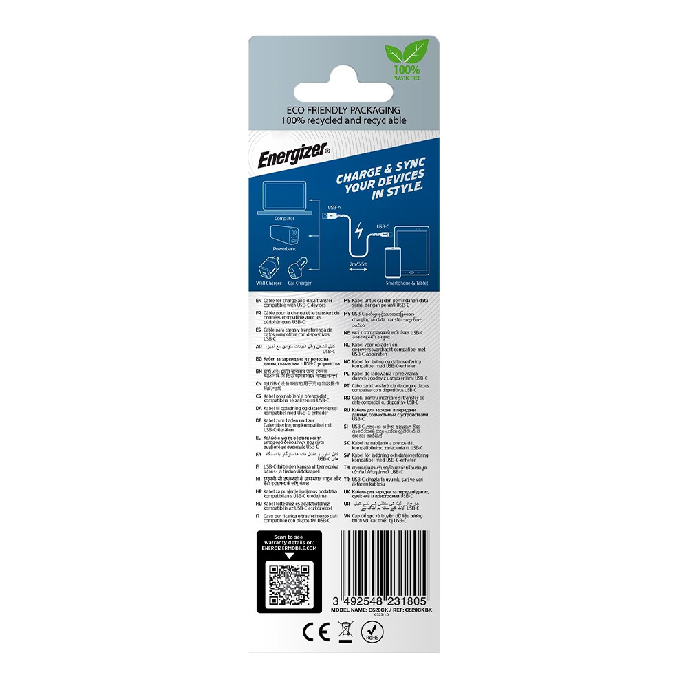 1 db Energizer töltőkábel USB-C 2M fekete textil borítás