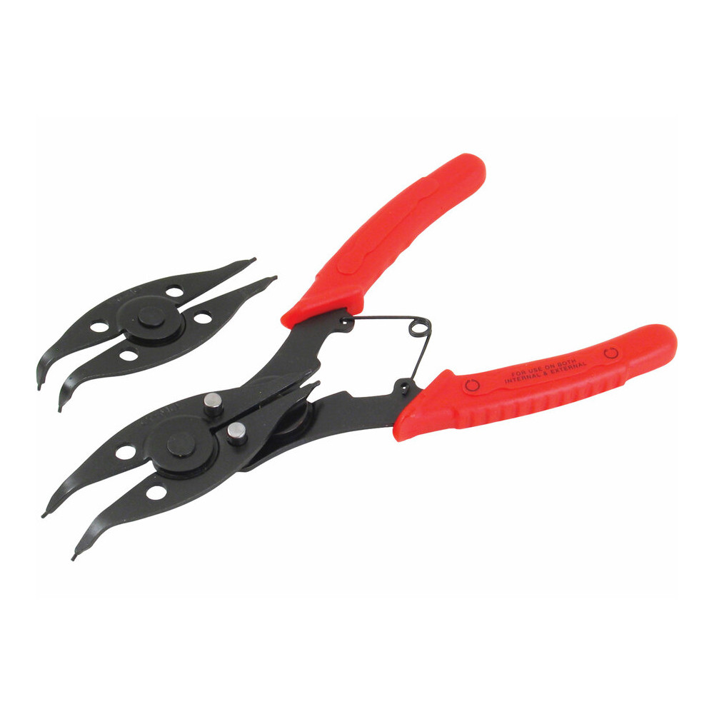 6 különböző típusú seeger fogót lehet összeállítani: egyenes, illetve 45 fokban és 90 fokban döntött pofákkal, külső és belső kivitelben