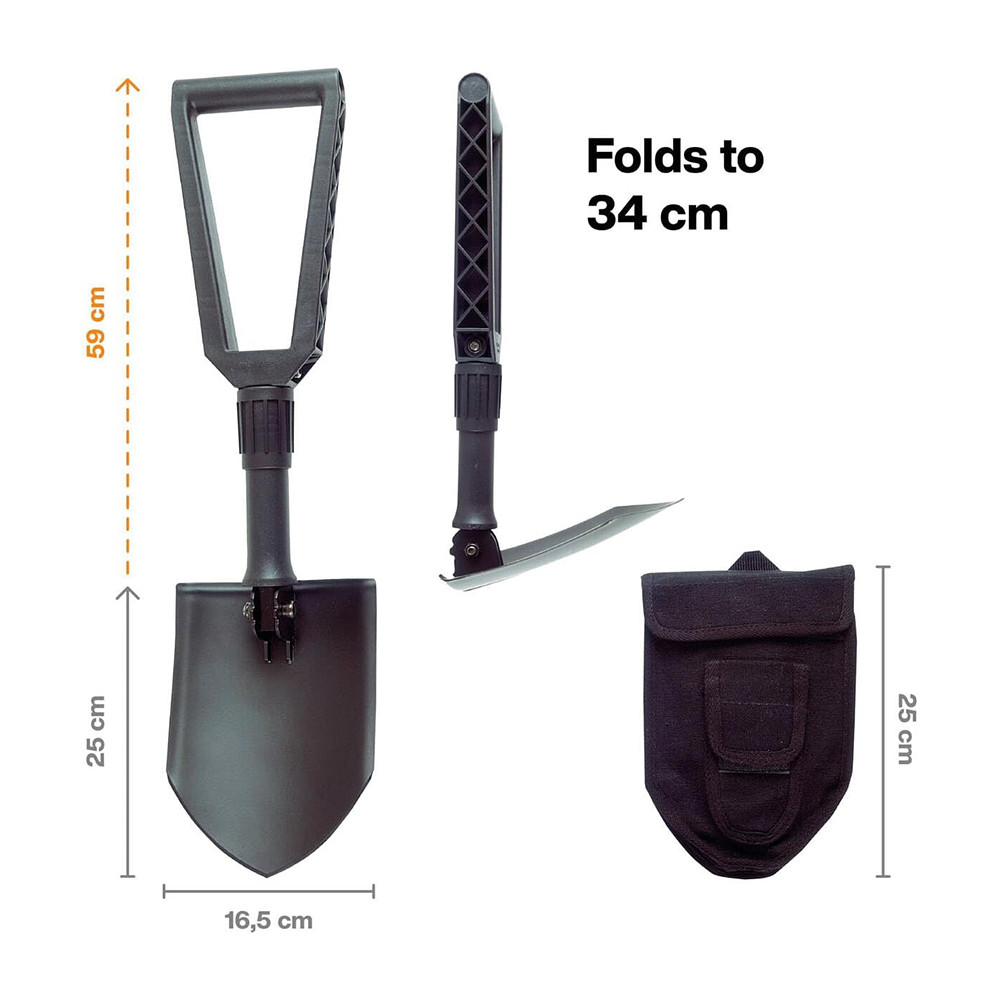 • Az összecsukható lapát vászon védőhuzattal rendelkezik a biztonságos tárolás és szállítás érdekében