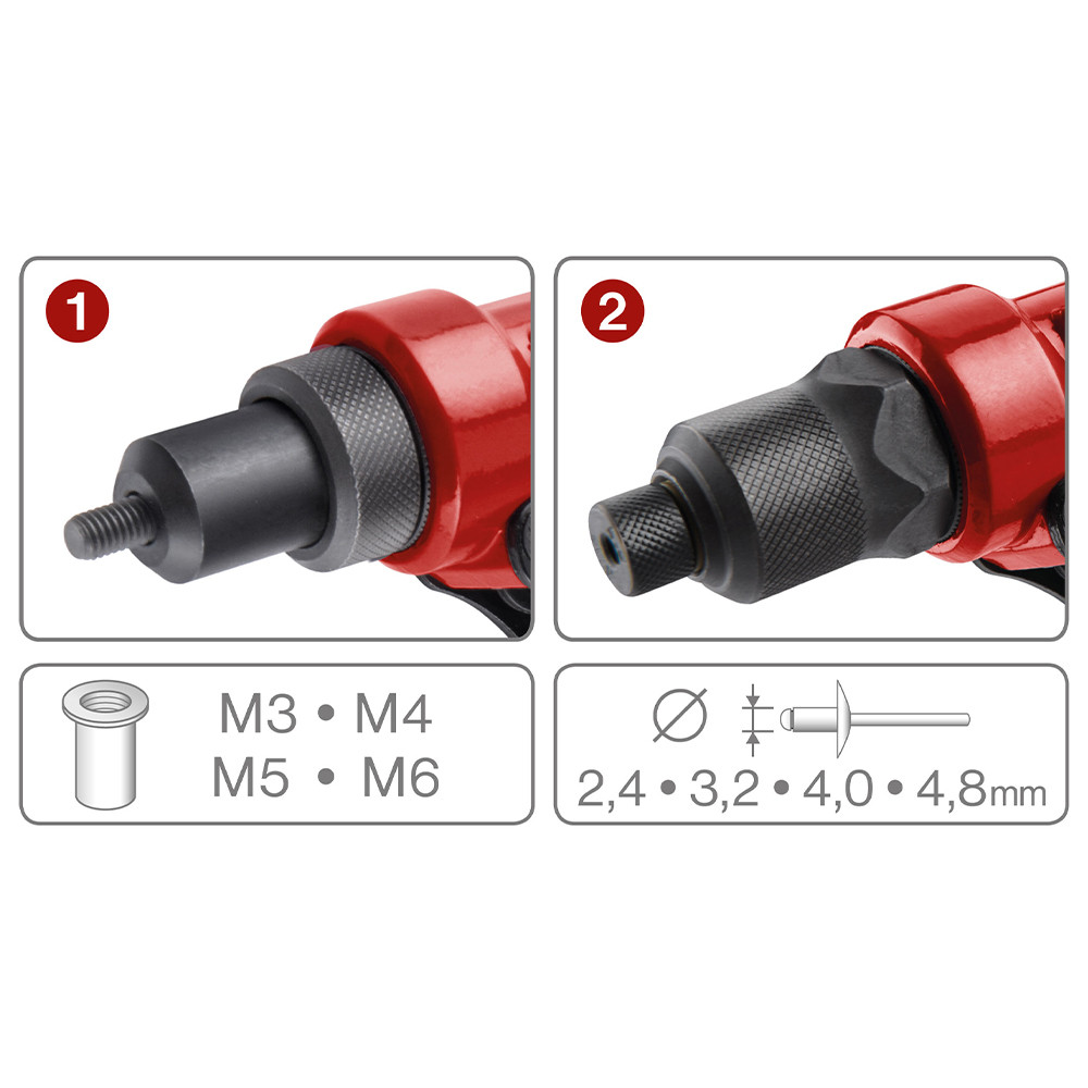 • Használható popszegecs: 2,4-3,2-4,0-4,8 mm