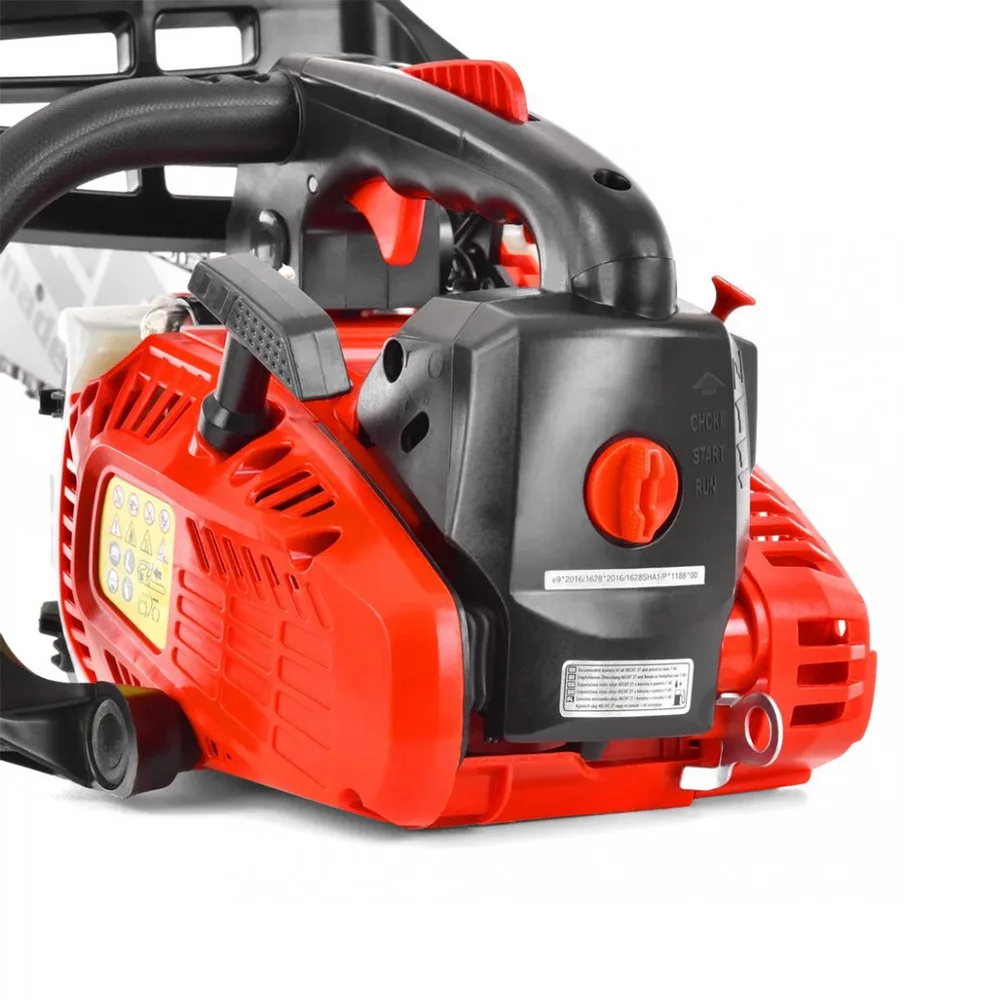 • Álátszó üzemanyagtartállyal rendelkező benzines fűrész, 25,4 cm3 űrtartalmú, 2 ütemű, 0,75 kW-os motorral