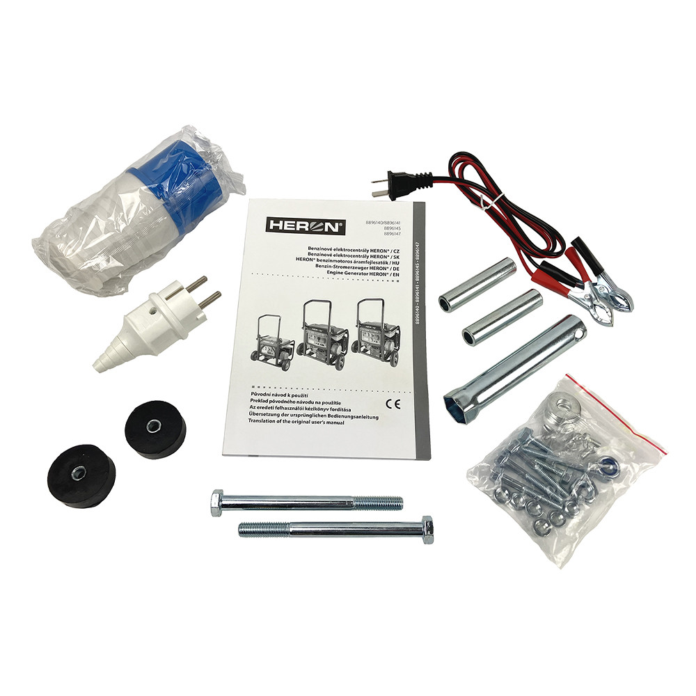 • 1 db Heron, benzinmotoros áramfejlesztő, 1 fázisú, max. teljesítmény 3 kVA, elektromos indítás