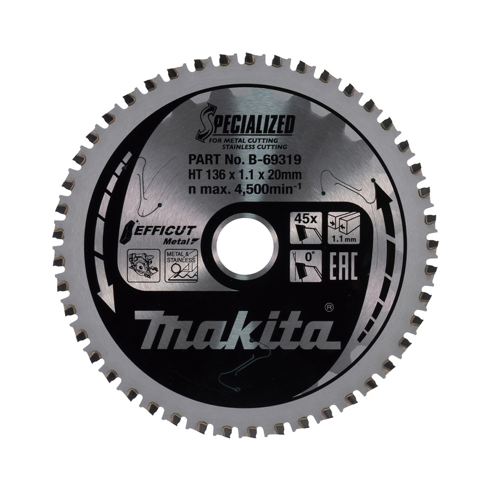 Makita EFFICUT körfűrészlap akkus géppel, rozsdamentes acélhoz, fémhez 136x20x1,1mm 45 fog