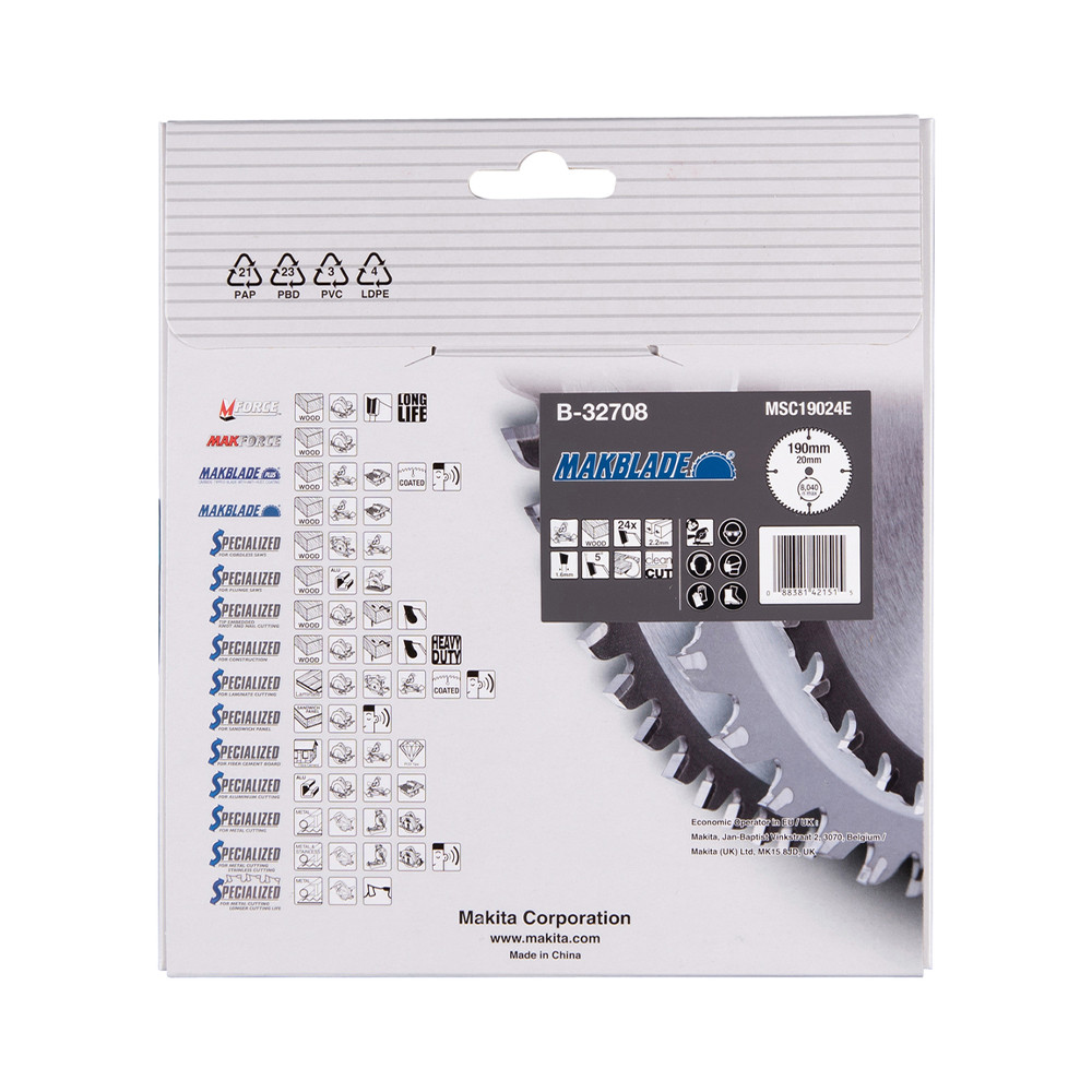 Makita Makblade körfűrészlap fához 190x20x2,2mm 24 fog