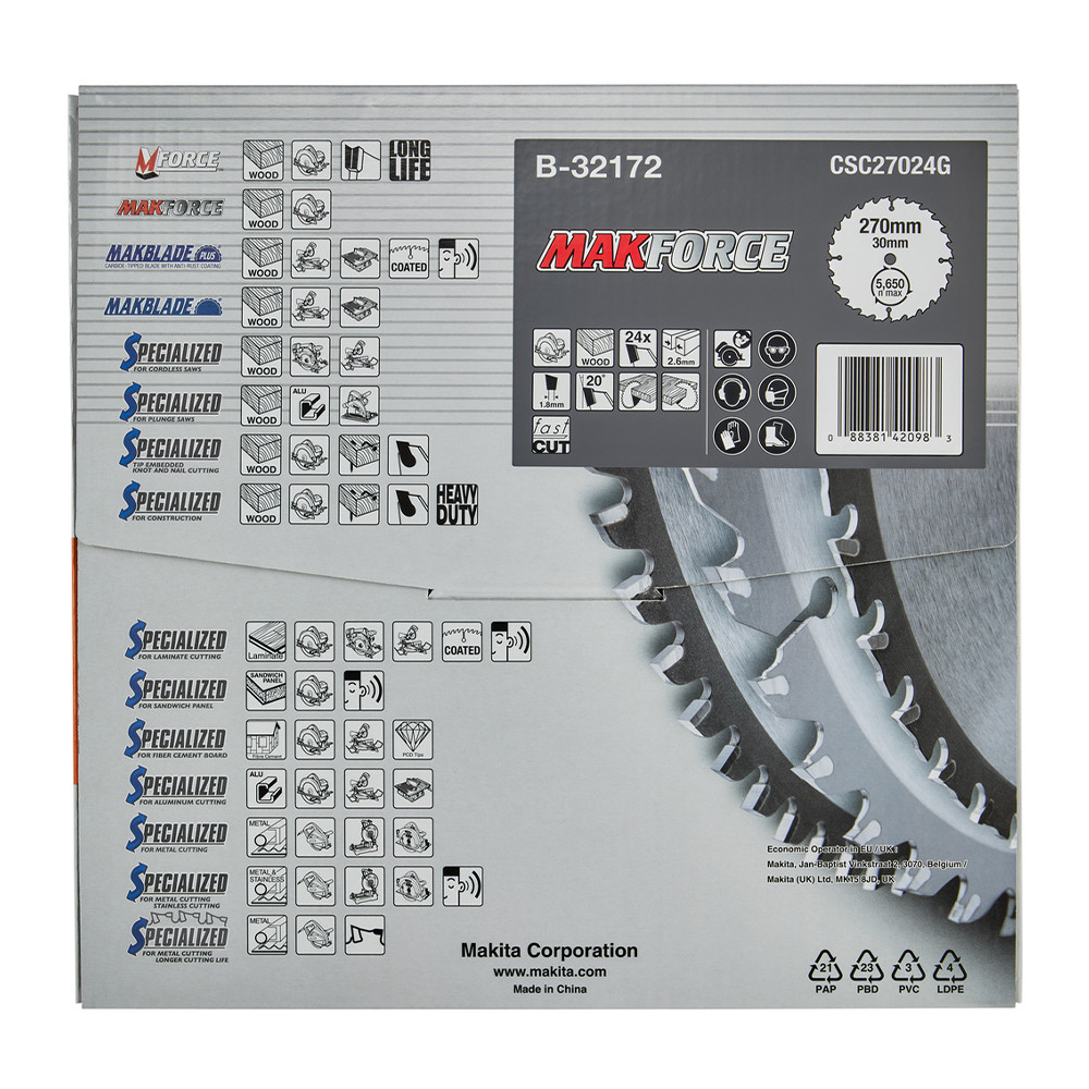 Makita Makforce körfűrészlap fához 270x30x2,6mm 24 fog