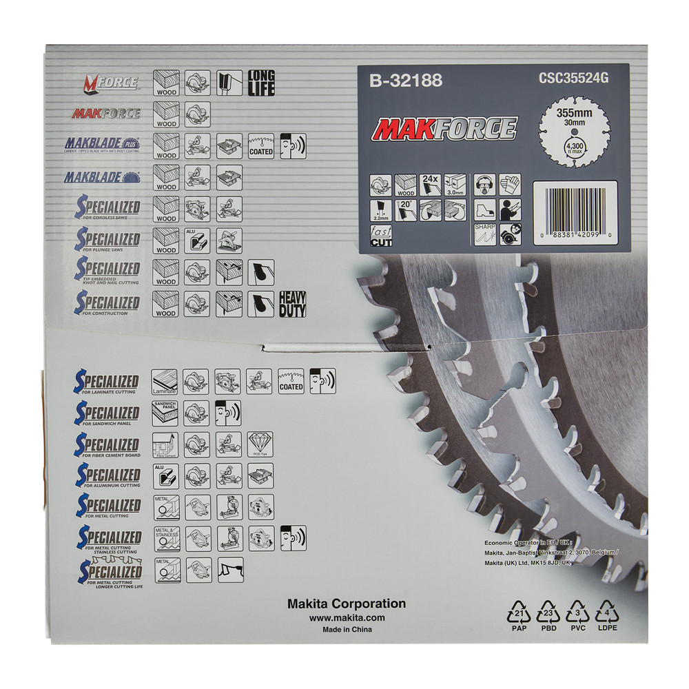 Makita Makforce körfűrészlap fához 355x30x3mm 24 fog