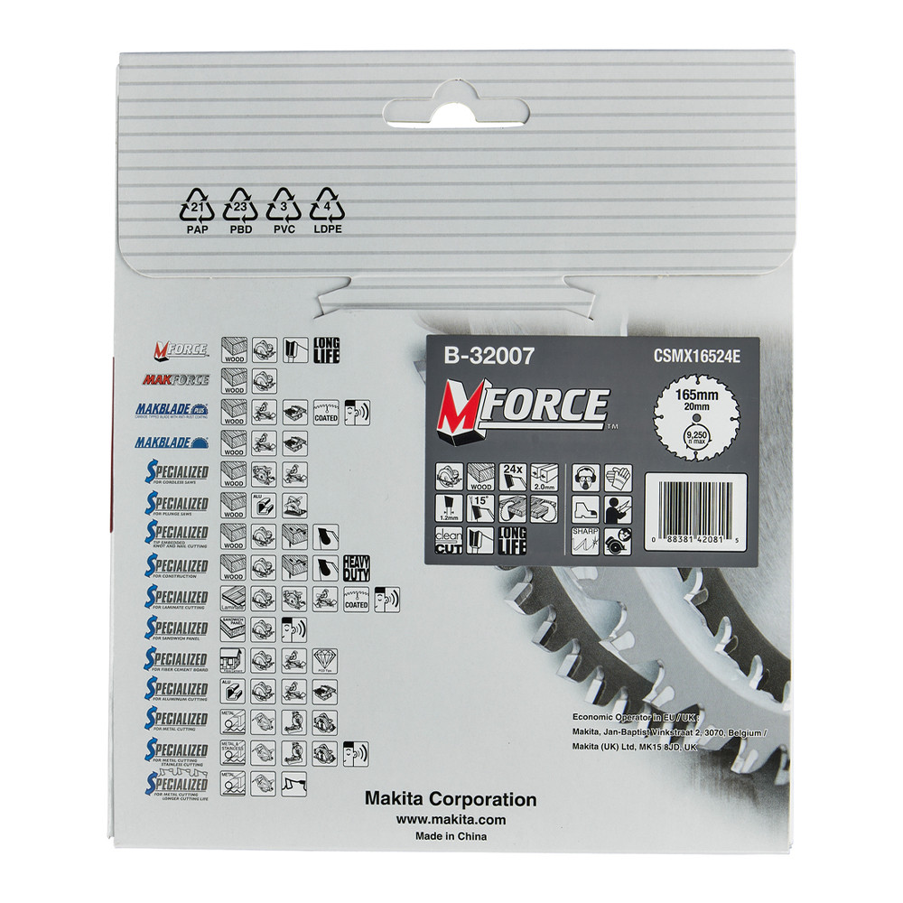 Makita Mforce körfűrészlap fához 165x20x2mm 24 fog