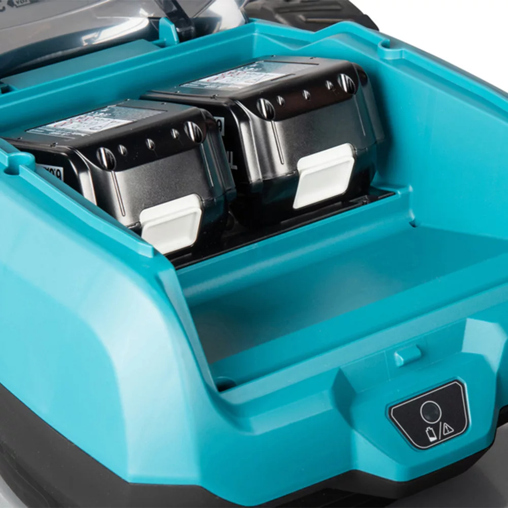 • A fűnyíró két 18 V-os LXT akkumulátorral (BL1860B) akár 900 m², két nagy kapacitású 18 V-os LXT akkumulátorral (BL18120) pedig akár 1920 m² területet is képes lenyírni