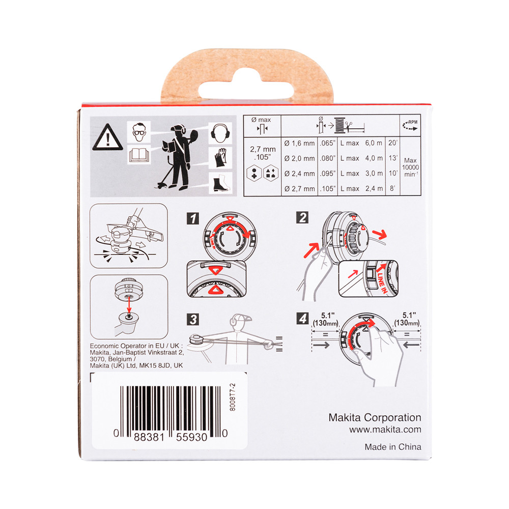 Makita félautomata damilfej, M8x1,25RH d: 2 mm 102 mm DUR189