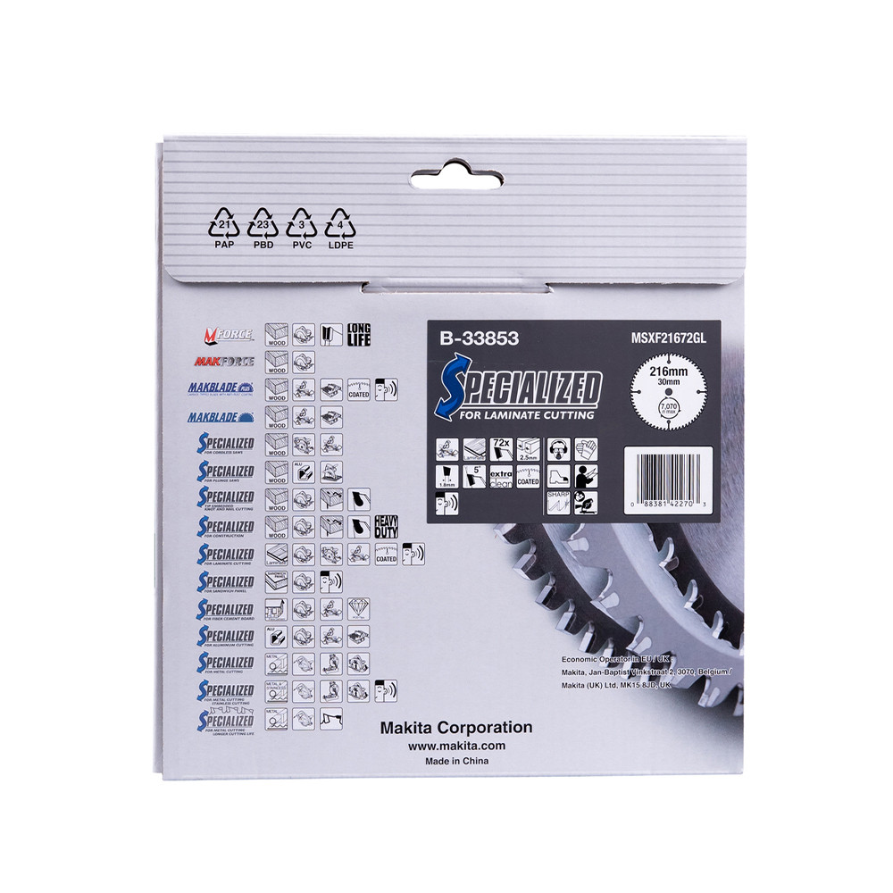 Makita körfűrészlap laminált laphoz akkus géppel 216x30x2,5mm 72 fog