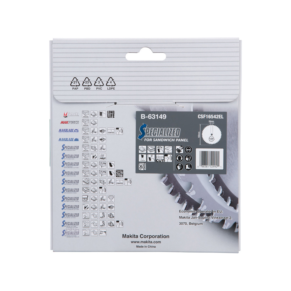 Makita körfűrészlap szendvicspanelhez 165x20x1,75mm 42 fog