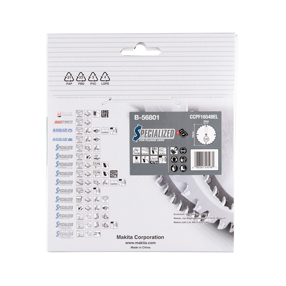 Makita merülő körfűrészlap Corian laphoz 165x20x2mm 48 fog