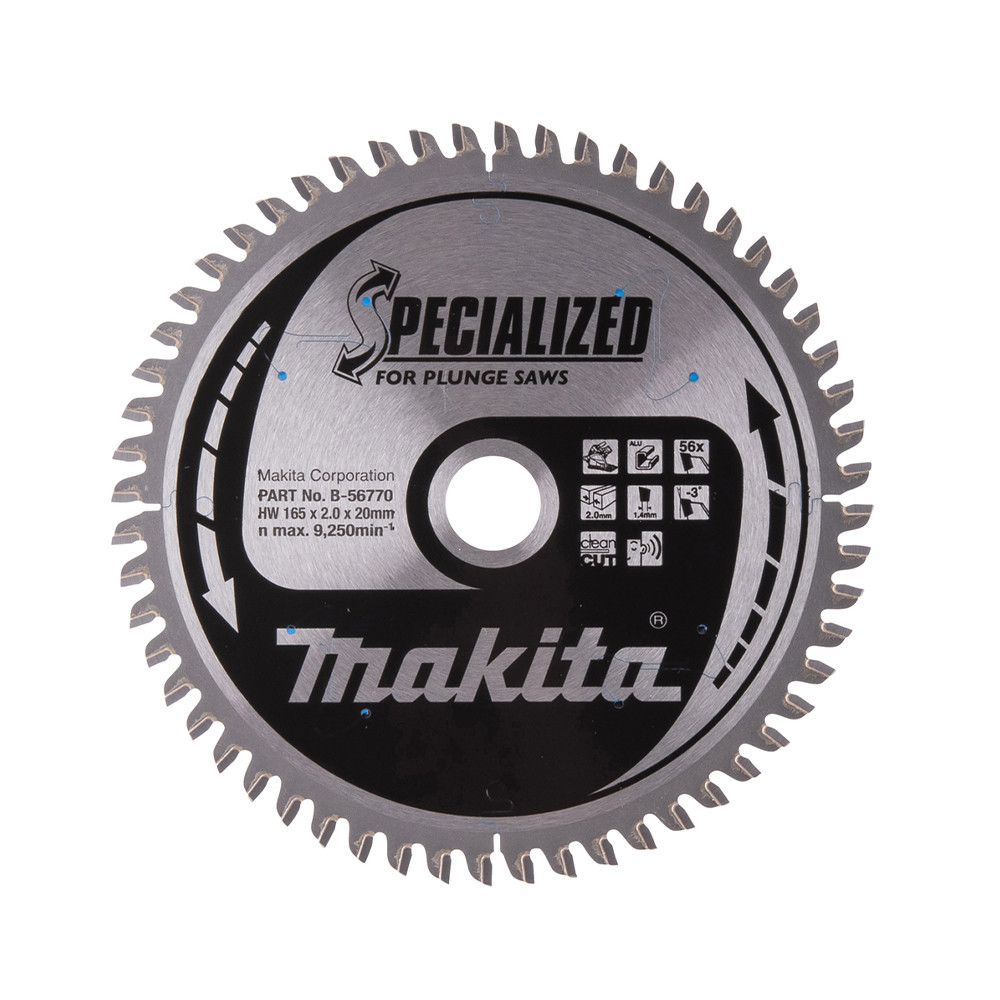 A fűrészlap 56 fogú, volfrámkarbid borítású, 2,0 mm-es vágásszélességgel és 20 mm-es furatátmérővel rendelkezik.