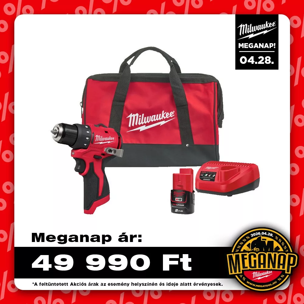 • 1 db Milwaukee akkus fúró-csavarozó M12 BLDDRC-201BRF 12V