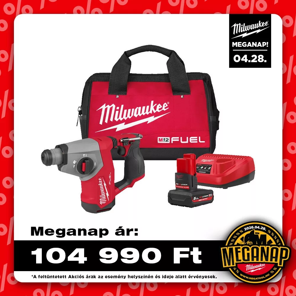 Milwaukee akkus fúrókalapács M12 FHAC16-501BRF 12V 1x5,0 Ah, szerszámtáskában