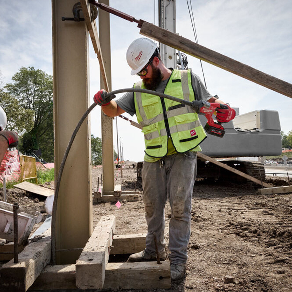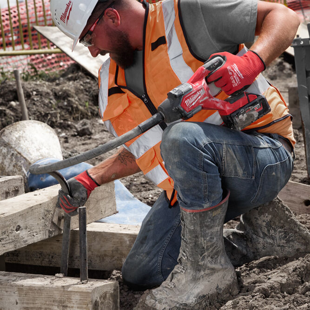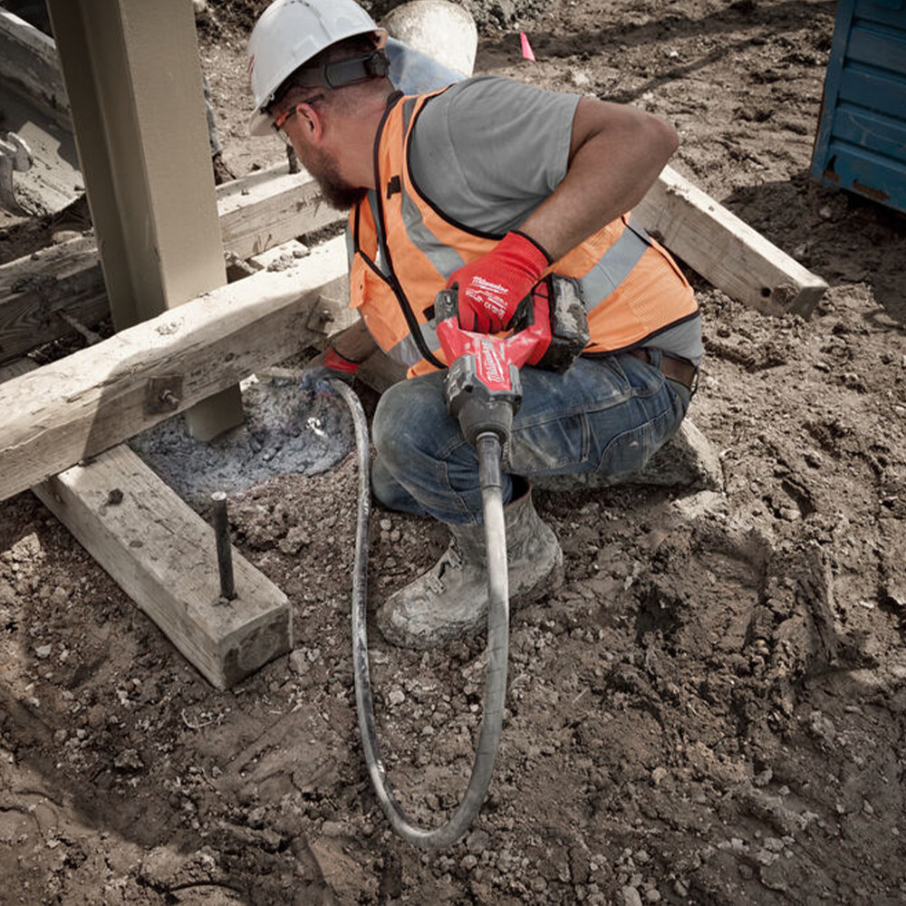 Az 1,2 m-es tömlőhossz tökéletes a laposan készítendő munkákhoz, például kis födémekhez vagy lábazatokhoz (M18 FCVN12)