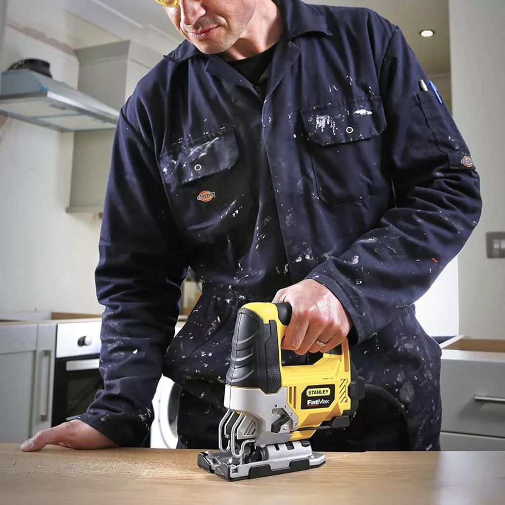 • A STANLEY® FATMAX® 710 W-os vezetékes, AC dekopírfűrész készletkofferben egy erőteljes, 710 W-os motorral rendelkezik a tiszta és hatékony vágásért, valamint egy állítható ingával, amellyel a vágási agresszivitás az anyagnak és az alkalmazásnak megfelelően állítható