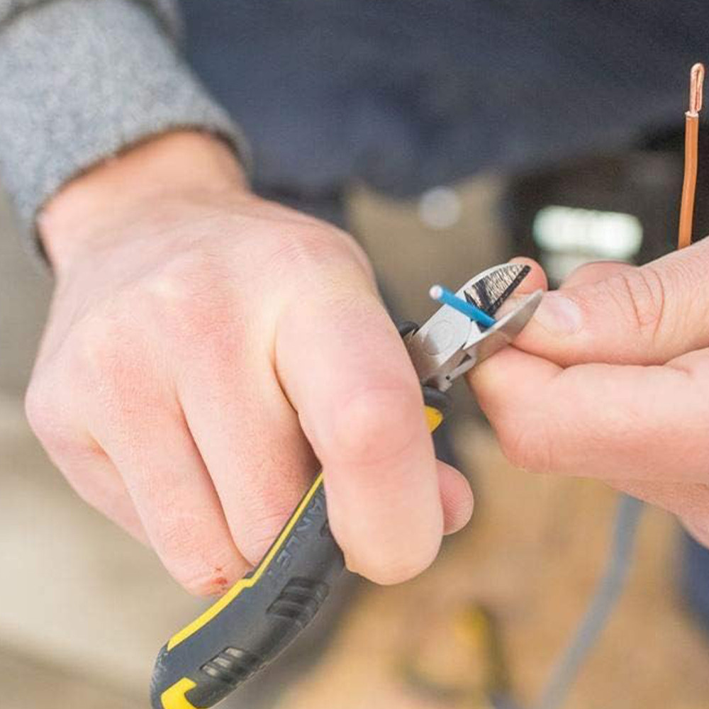 • A STANLEY® FATMAX® Mini villanyszerelő fogó, átlós vágású, 110 mm-es