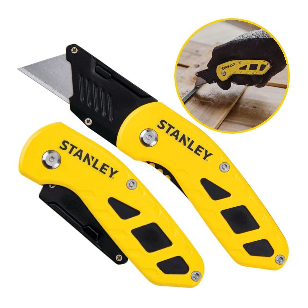 A STANLEY® összecsukható, fix pengéjű univerzális kés korrózióálló összecsukó mechanizmussal rendelkezik, amely biztonságosan összecsukható kis, kényelmes méretre, így használaton kívül zsebekben és tasakokban is elfér