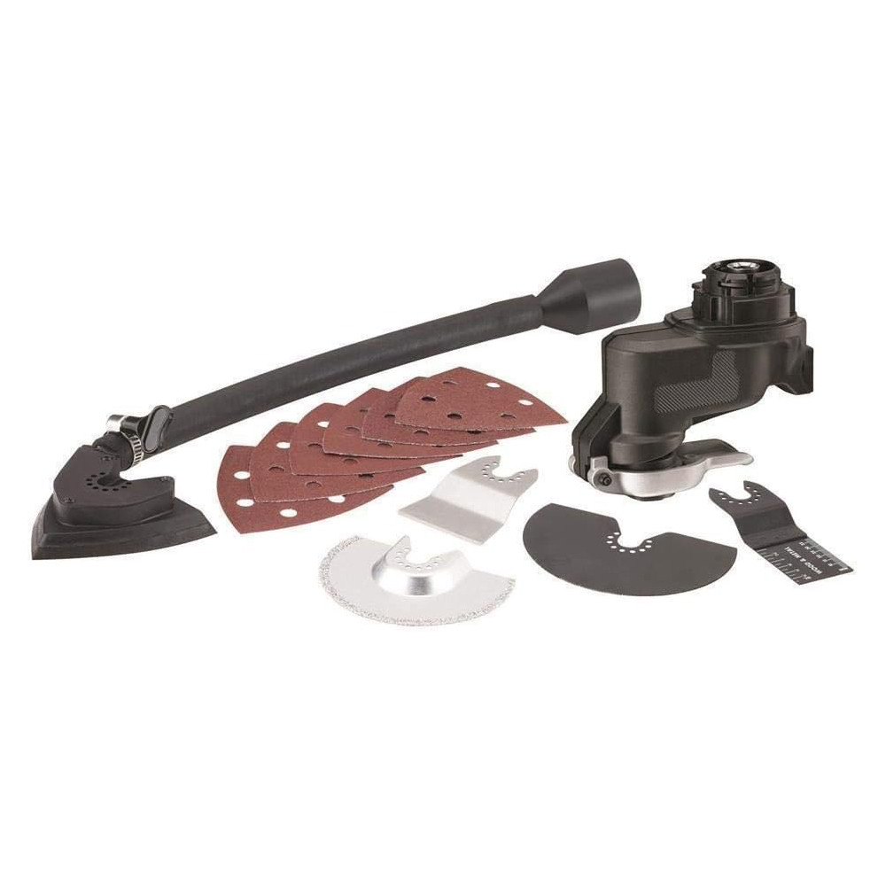 • Univerzális tartozék befogó adapter, csiszolótalp, 6 csiszoló ív, merülő fűrészlap (1-1/2" x 1-3/8" fába és fémbe), szegmentált fűrészlap fához és fémhez