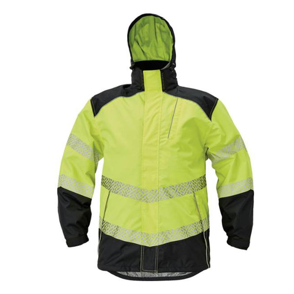• Férfi szél- és vízálló hi-vis kabát levehető kapucnival