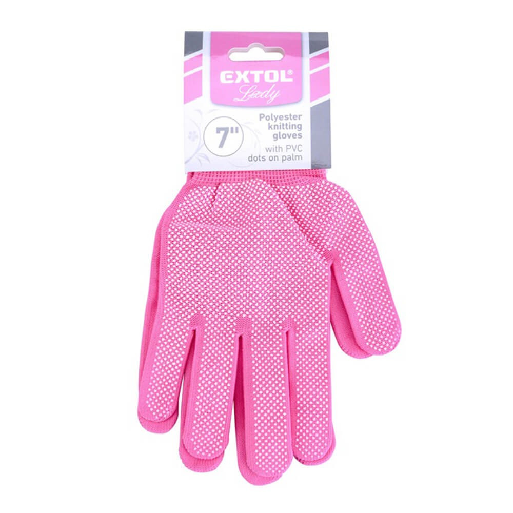 Az ExtolLady rózsaszín kötött kesztyű, 7-es (99719),PE,fehér PVC pöttyökkel
