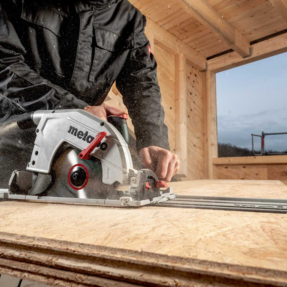 Strapabíró kézi körfűrész, közvetlenül a Metabo és egyéb gyártók vezetősínjeire helyezve használható a tökéletes vágás érdekébenMetabo KFS fejezősínre való egyszerű csatlakozás a gyors-pontos vágások érdekébenAlumínium présöntvényből készült könnyű vezetőasztalMarkolata csúszásmentes és puha felületűJelölés utáni vágásoknál is kitűnően látható a vágásjelzőPrecíz vágáspontosság érdekében 0 fokos állás utánállíthatóUniverzális porszívó csatlakoztatásával elszívási lehetőségFűrészforgács-kivető csonk minden munkavégzési pozícióhozA motor védelmére kikapcsoló szénkefeKettős megvezetésű alumínium párhuzamütköző a pontos leszabó vágásnál nyújt segítséget