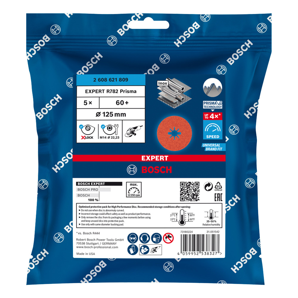 Bosch EXPERT R782 X-LOCK Prisma kerámiaszemcsés fíbertárcsa Inoxhoz, 5db 125mm, G60+