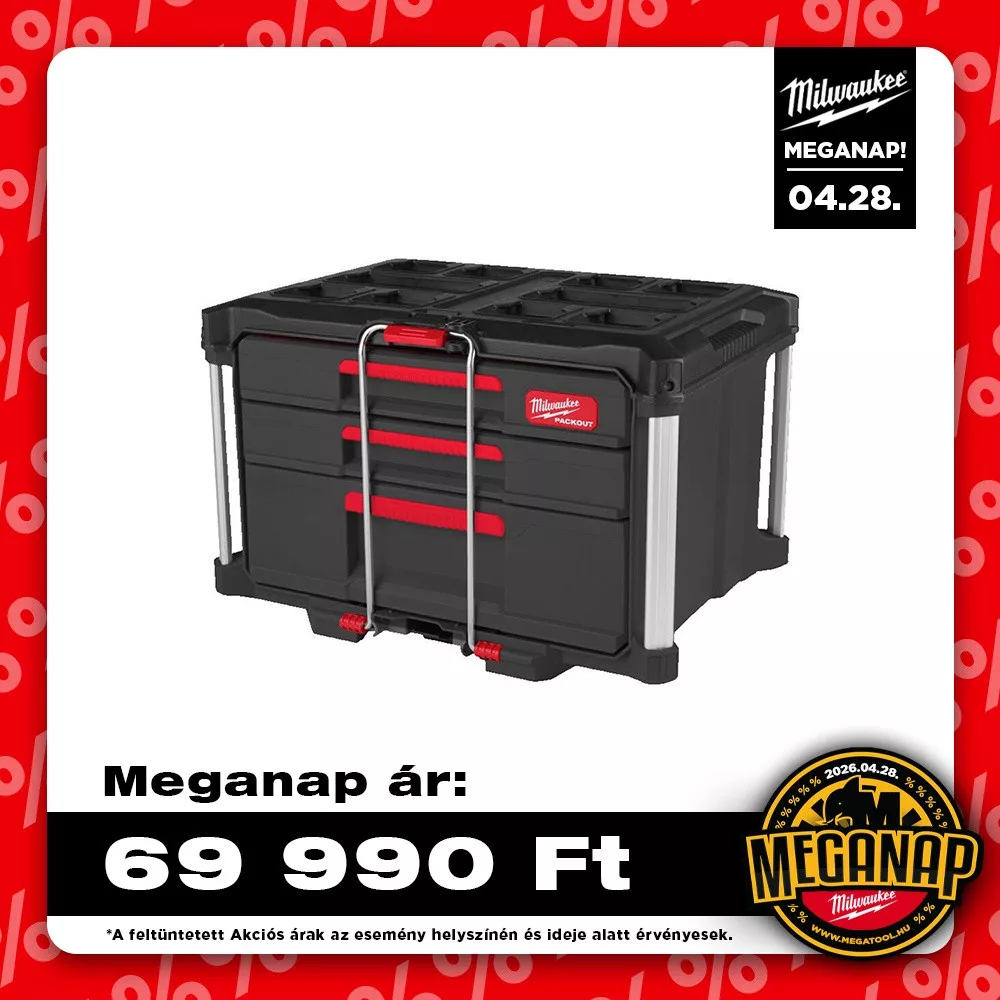 • 1 db Milwaukee Packout 2+1 fiókos tároló láda