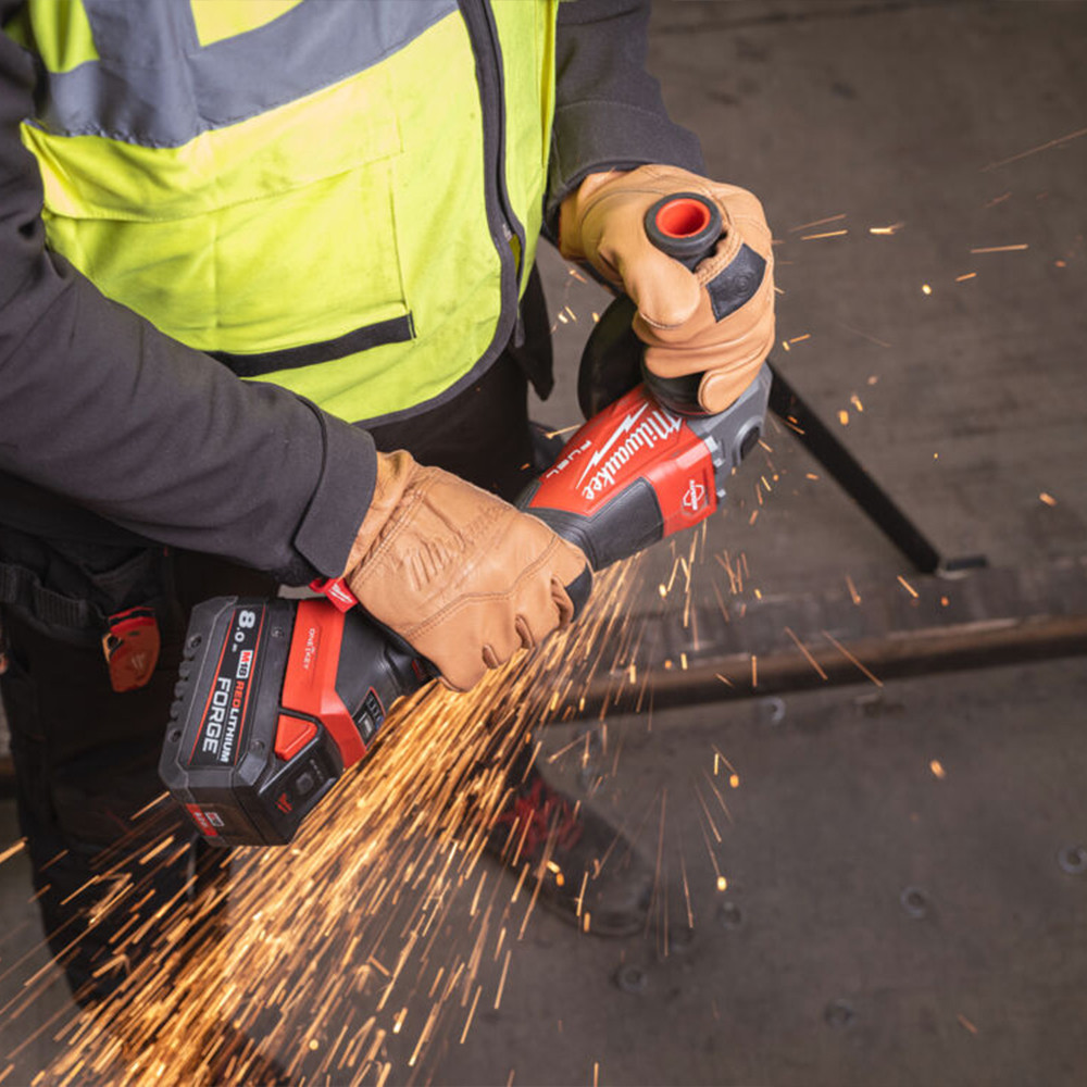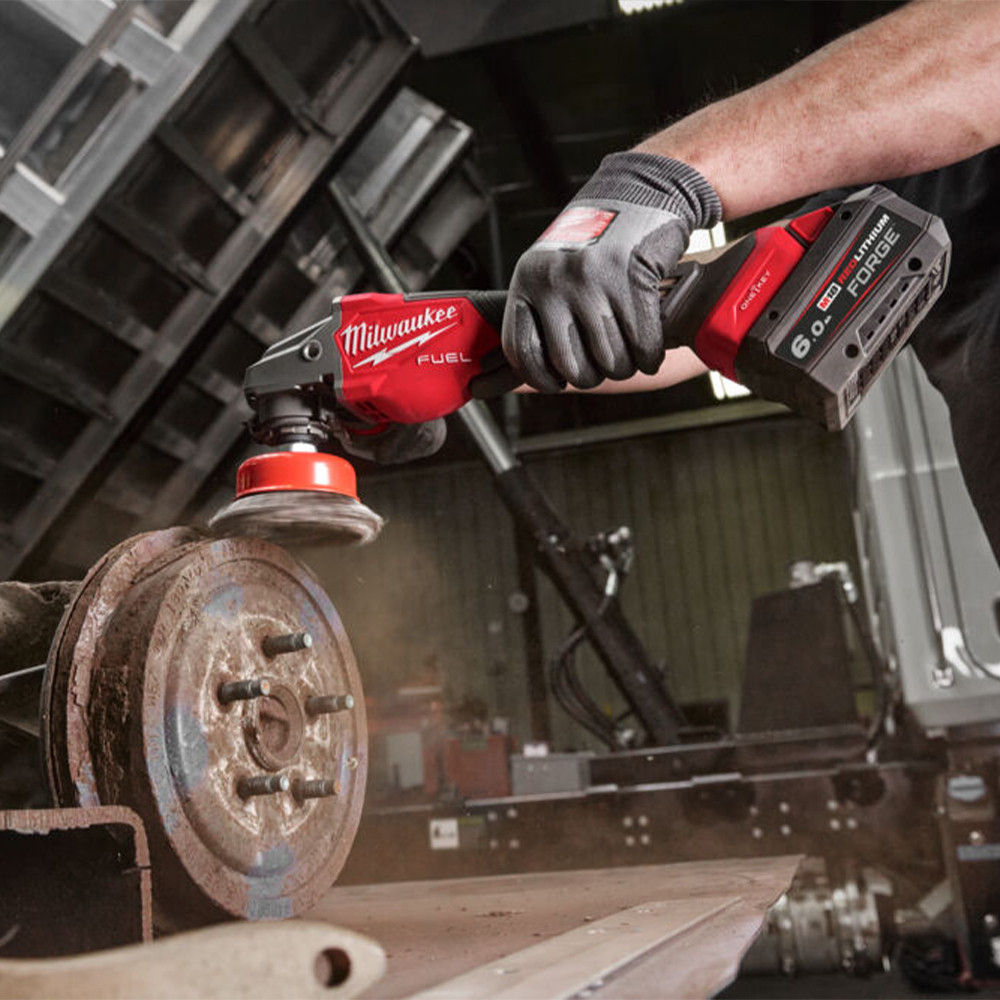 • M18™ nagy teljesítményű 125 mm-es kis sarokcsiszoló, amely egy 1800 W-os csiszolóhoz hasonló vezetékes teljesítményt nyújt