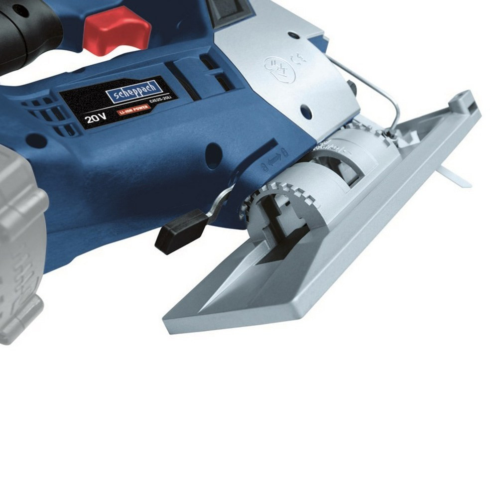 • A Scheppach CJS25-20Li egy nagy teljesítményű, magas lökethosszal rendelkező akkus szúrófűrész, amely alkalmas műanyag, fém és faanyag vágására