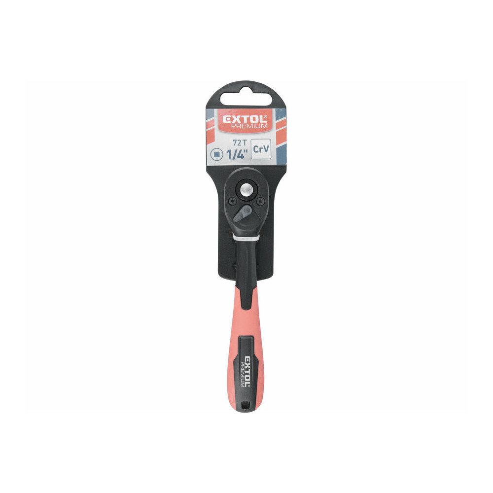 Extol Premium racsnis hajtókar, CV., 72 fog, hajlított szár, csúszásgátló TPR markolat; 1/4", 150mm
