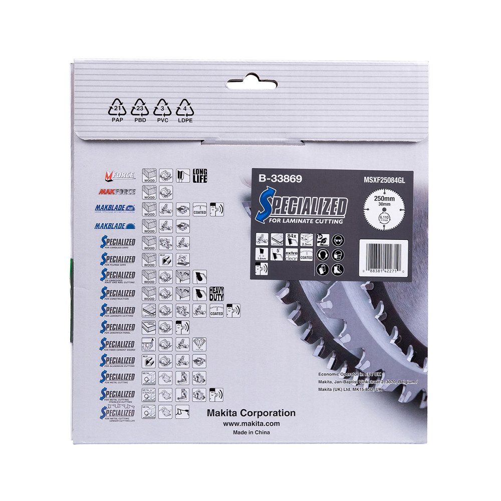 Makita körfűrészlap laminált laphoz akkus géppel 250x30x2,5mm 84 fog