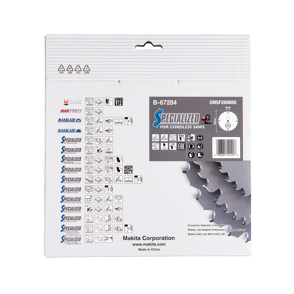 Makita EFFICUT körfűrészlap akkus géppel, fához 260x30x2,15mm 60 fog