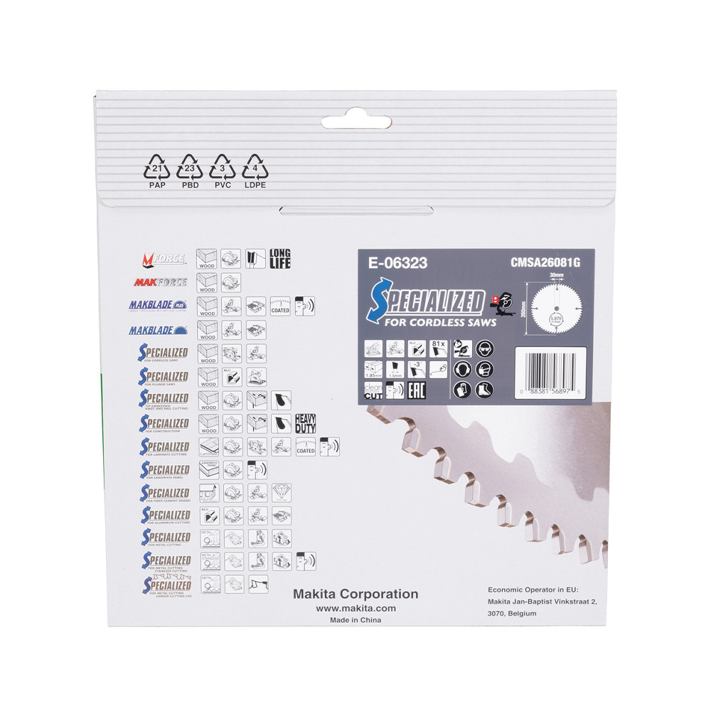 Makita EFFICUT körfűrészlap akkus géppel, alumíniumhoz 260x30x1,85mm 81 fog