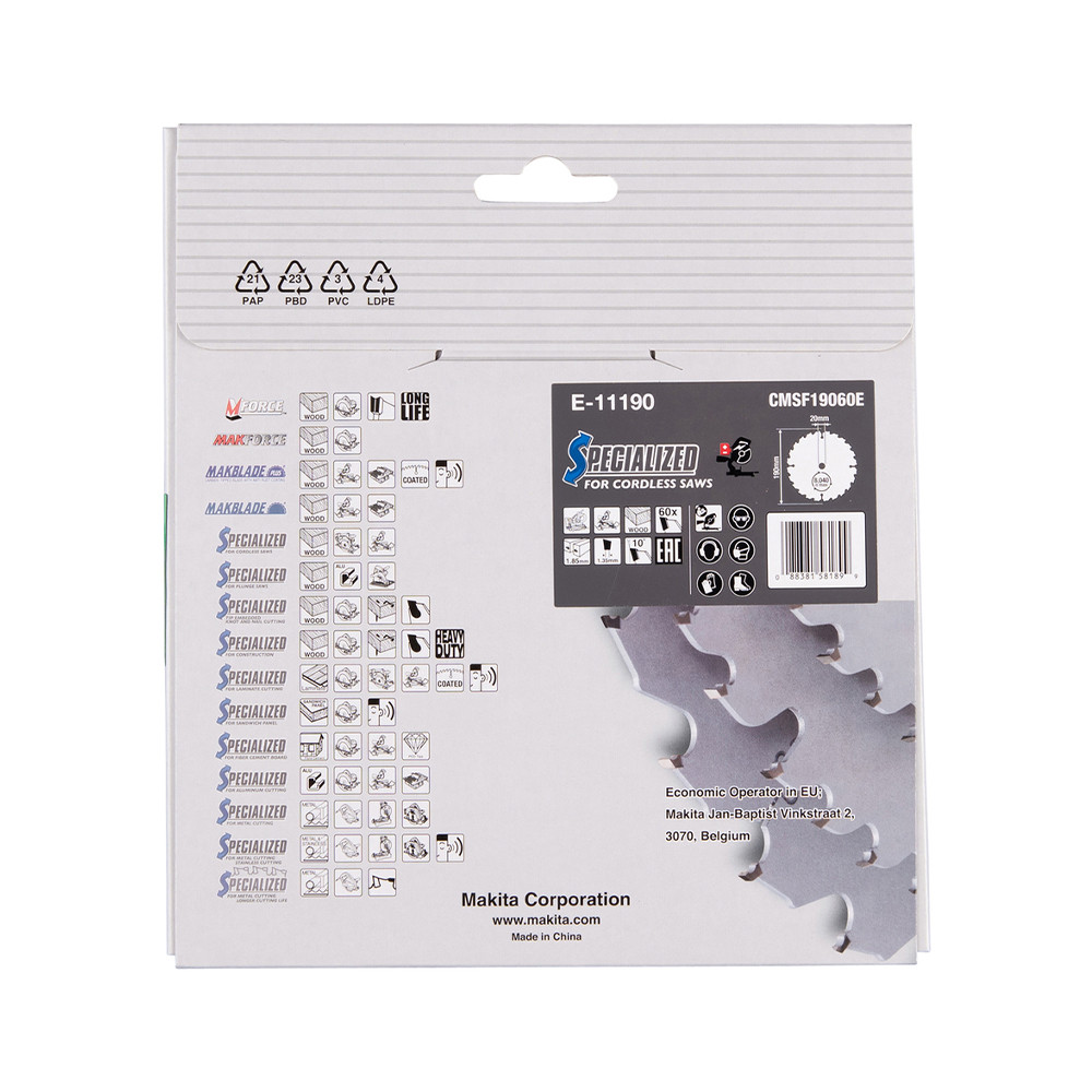 Makita EFFICUT körfűrészlap akkus géppel, fához 190x20x1,85mm 60 fog