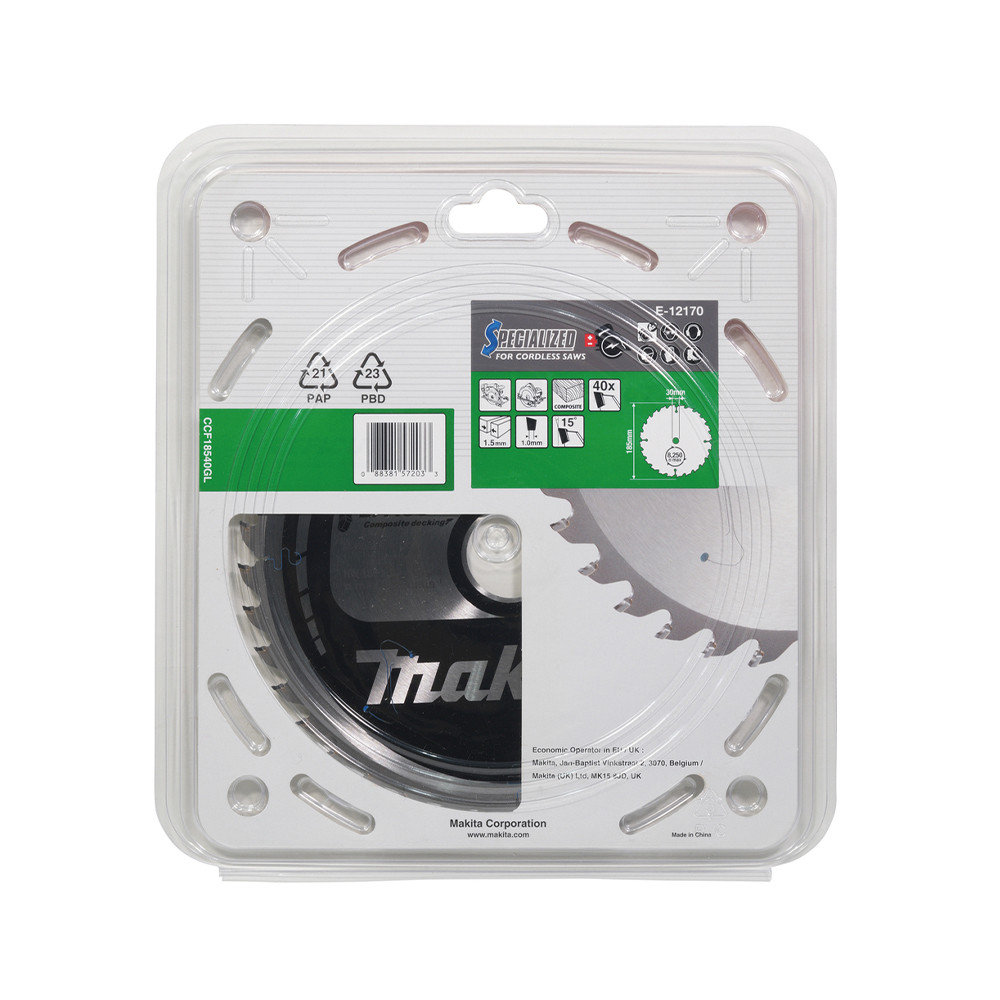 Makita EFFICUT körfűrészlap akkus géppel, kompozithoz 185x30x1,5mm 40 fog