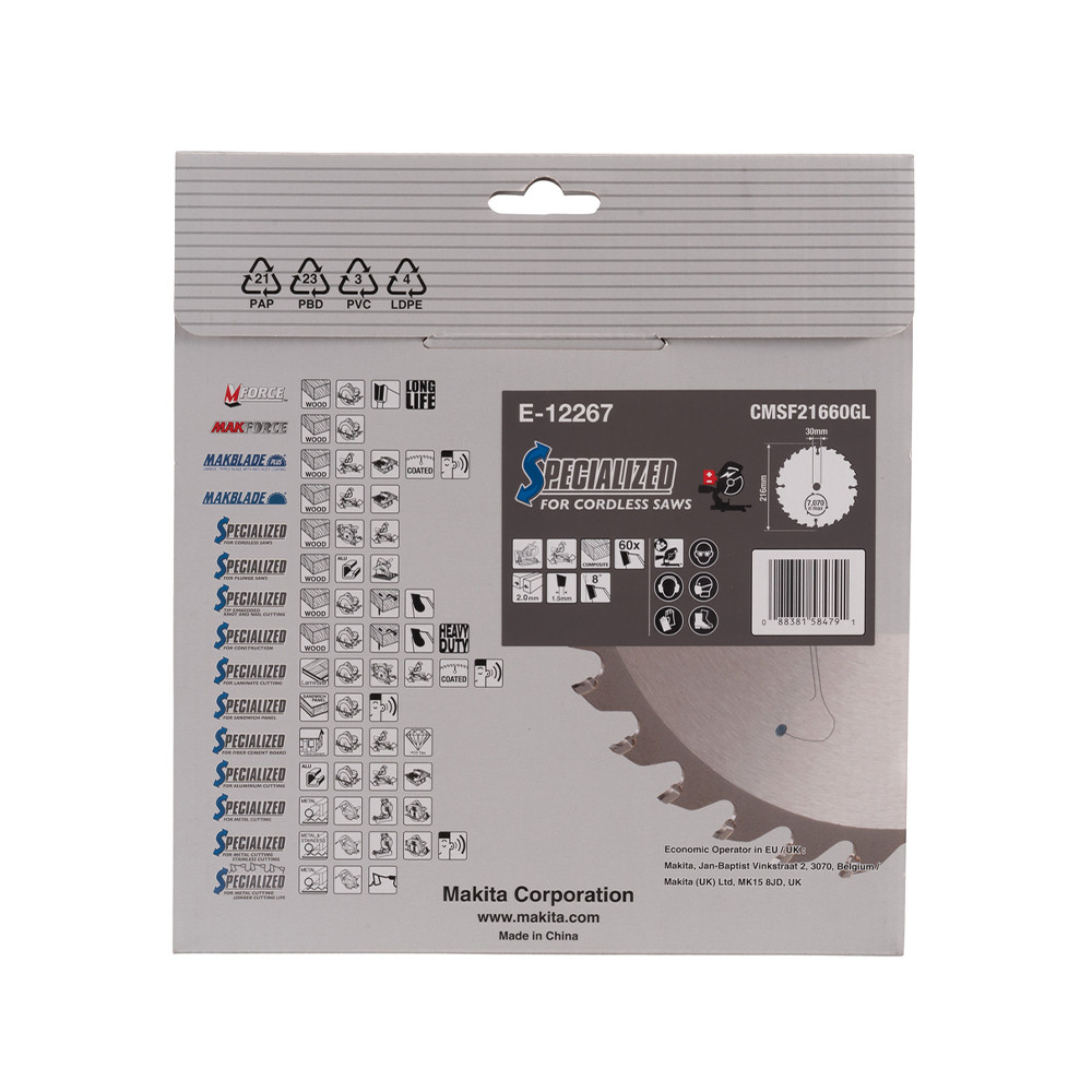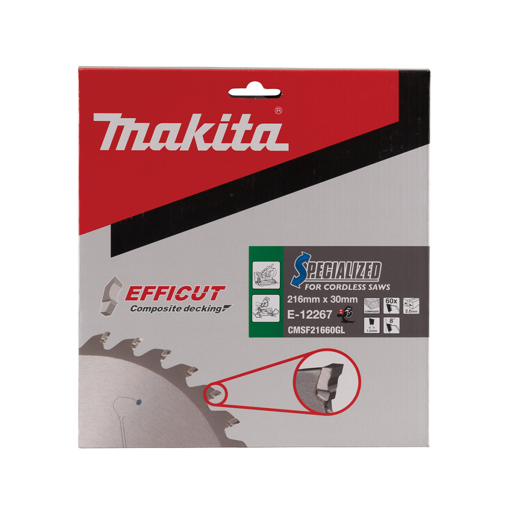 Makita EFFICUT körfűrészlap akkus géppel, kompozithoz 216x30x2mm 60 fog